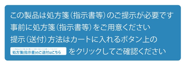 【処方箋提示】この製品のご購入時には処方箋(指示書等)のご提示をお願いしております。提示方法につきましては「処方箋(指示書等)の送付について」をご確認下さい。